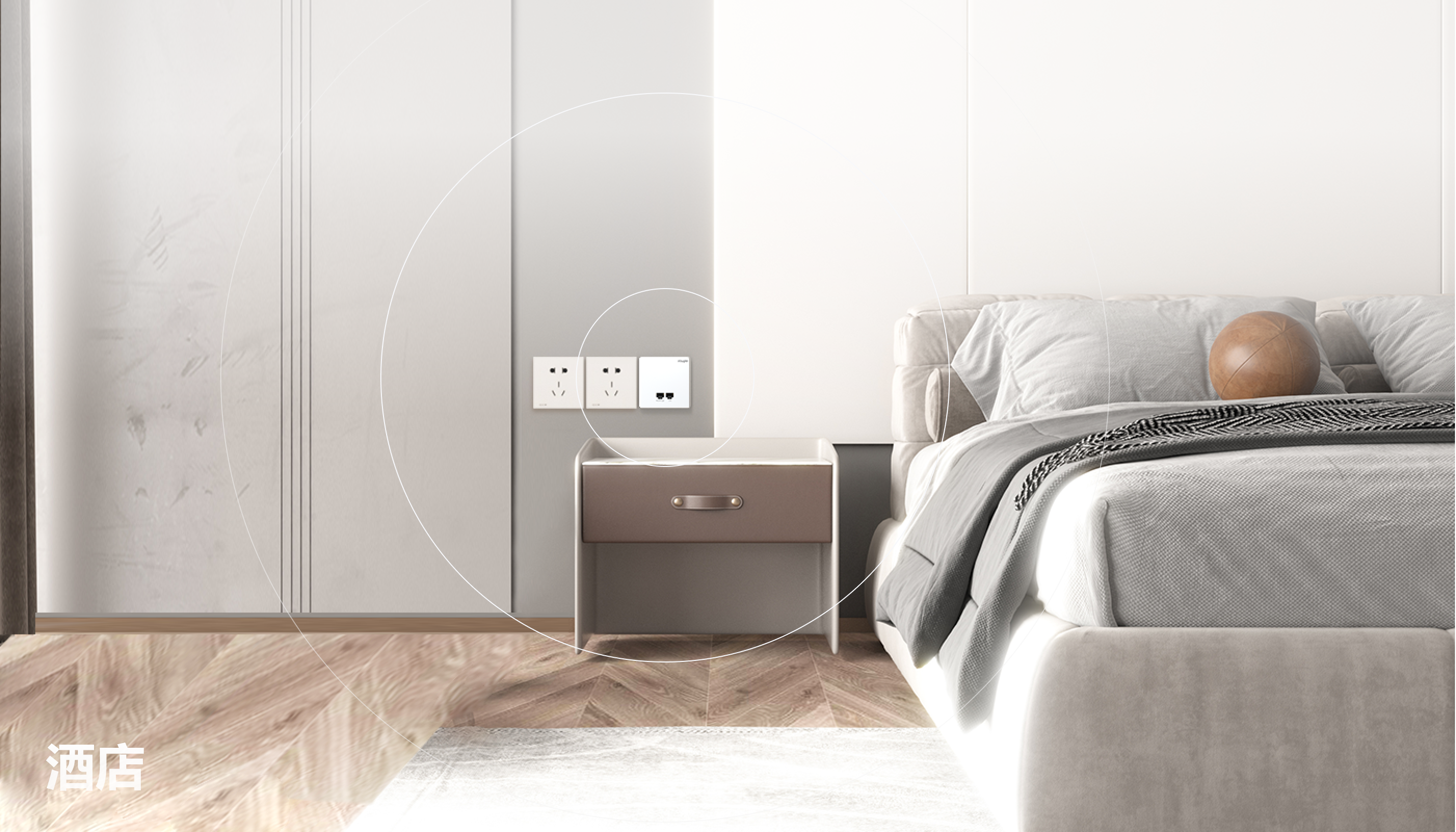 其一,人性化的外观结构设计。产品嵌入86盒后露出墙面的厚度不超过10mm,简洁美观不突兀;可根据室内装修颜色的搭配选择面板颜色;