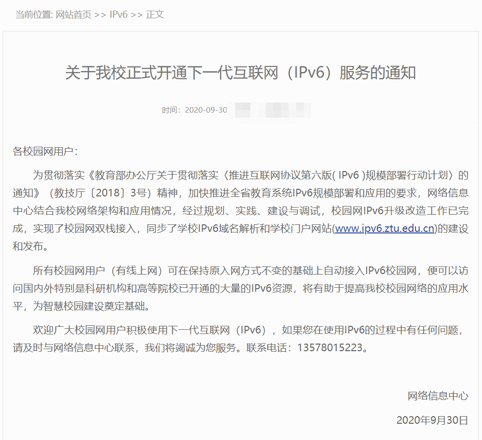 校园网IPv6升级改造工作完成,实现了全校校园网双栈接入。
