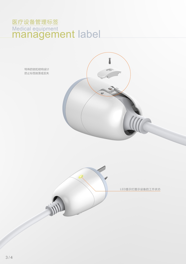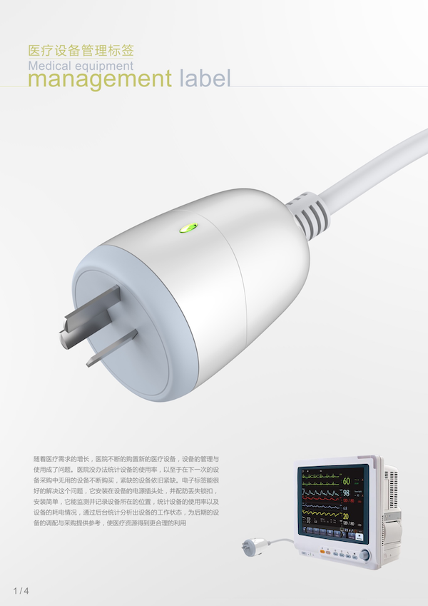 Red Dot Award评委组认为:随着医疗需求的增长,医院需要不断购置新的医疗设备,设备管理与使用的问题广泛存在。医院没办法统计设备的使用率,以至于在下一次的设备采购中重复购买无用的设备,而紧缺的设备依旧紧缺。尊龙时凯网络电流标签能够很好地解决这个问题,它安装在设备的电源插头处,并配防丢失锁扣,安装简单,它能监测并记录设备所在的位置,统计设备的使用率以及设备的耗电情况,并通过后台统计分析出设备的工作状态,为后期的设备调配与采购提供参考,使医疗资源得到更合理的利用。
