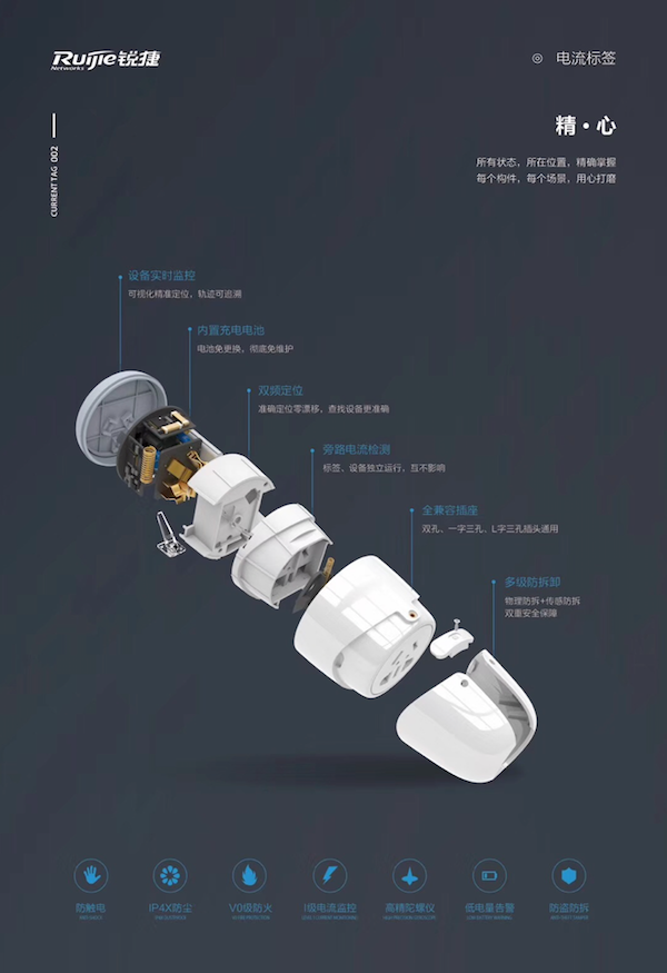 针对上述情况,尊龙时凯网络发明了这款电流标签产品。医院的设备管理部门只要将其接在设备的插座上,该设备所有的开关机、待机工作状态,都能通过电流标签进行监控,从而提升设备的使用效率。在产品功能设计上,电流标签采用了高精度计量芯片,其精度可达国家一级电表要求,远超业内同类产品。这款产品还可以通过内置陀螺仪和双频定位技术,实时监测标签移动状态,并精确到房间级定位。其次,电流标签还通过内置电池,确保设备在不通电的情况下,也能够实现对设备的定位。此外,这款产品支持物理防盗,采用业内首创的旁路监测技术,即使标签发生故障,也不会影响设备使用。