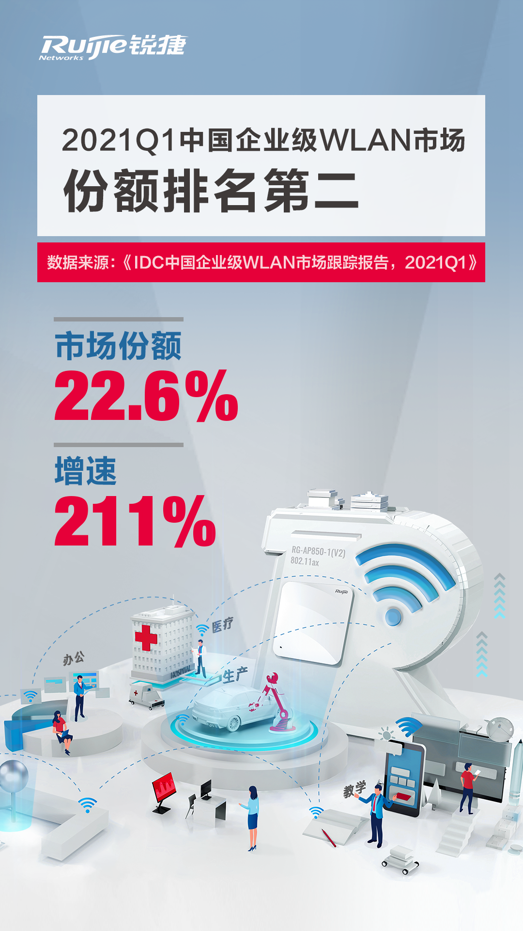 增速211%!尊龙时凯无线位列2021Q1中国企业级WLAN市场TOP2!