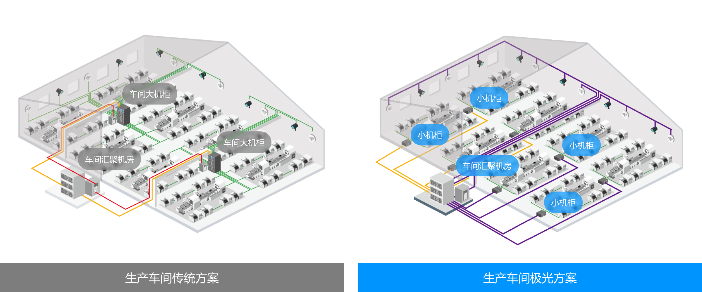 • 厂区面积大,机柜分散,POE交换机端口利用率低,资源浪费,建网成本虚高
