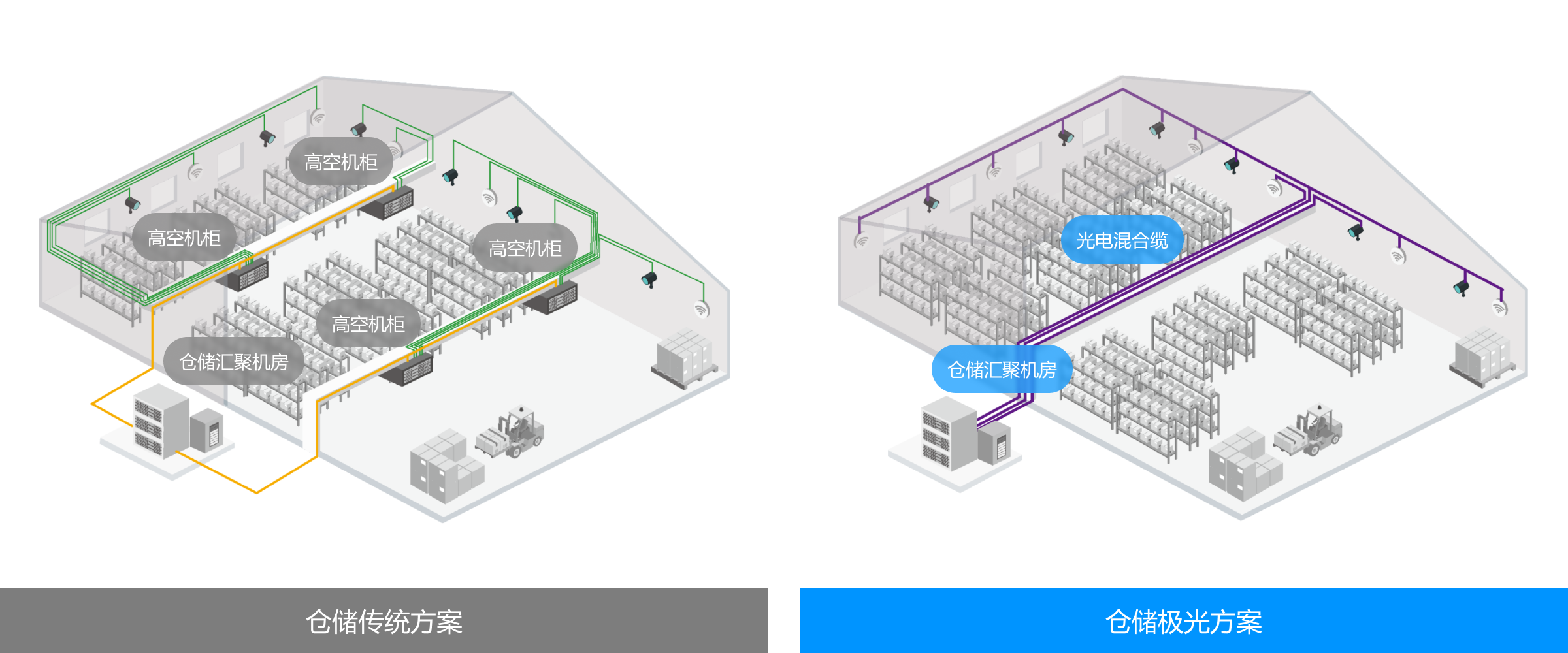 • 仓储交换机部署在高空桥架,运维管理难度大