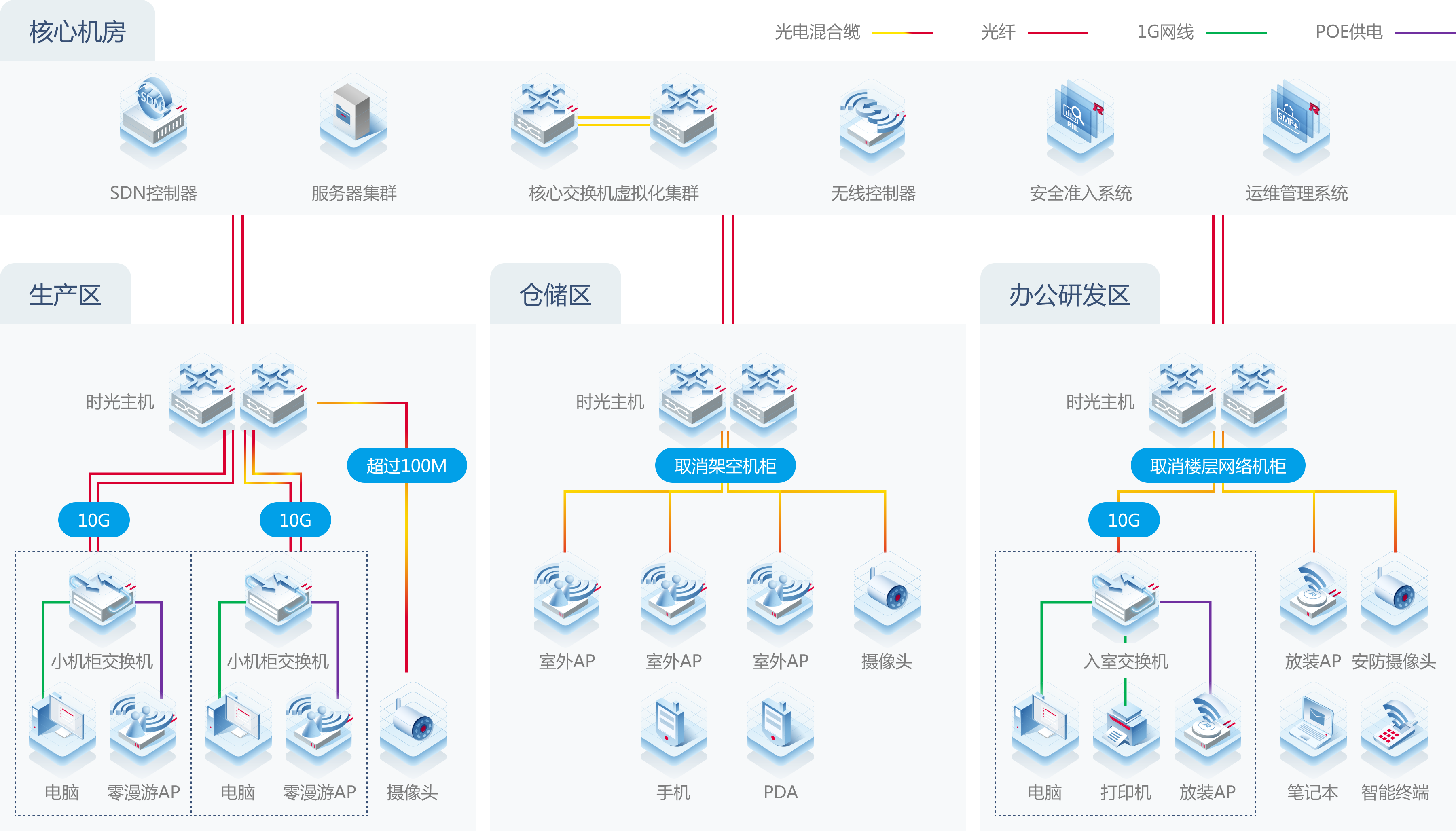 全面提升,满足企业的生产、办公、仓储场景的需求,为企业建立一套易扩展、高性能、