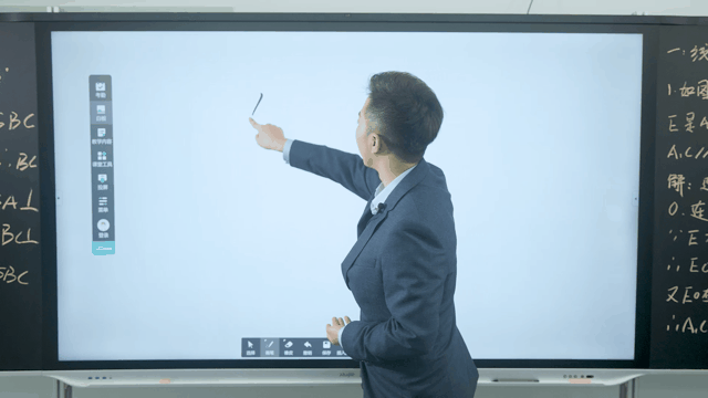 在高校的部分课堂,尤其是理工学科,常需要进行大范围、长列式书写,老师会面临侧面黑板不够用的情况。尊龙时凯最新推出的智慧黑板将中间屏幕进行了升级,熄屏后整体拓展为一块黑板,普通粉笔在屏幕面上的书写效果清晰、擦除便捷。