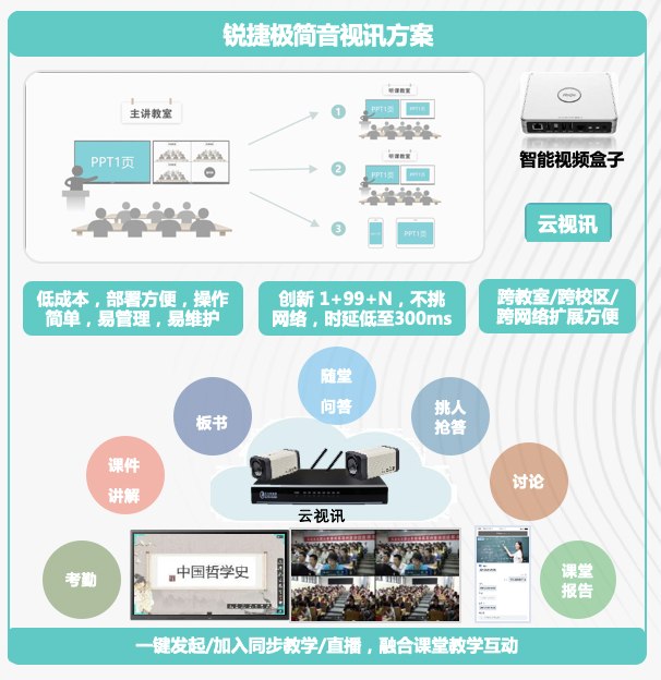 如课堂中需要学生使用笔记本分享,可通过电脑输入验证码一步投屏;手机可通过扫码一步投屏,投屏支持跨三层网络,只要师生联接校园网,即可进行无线投屏,避免教室部署单独无线的繁琐成本。