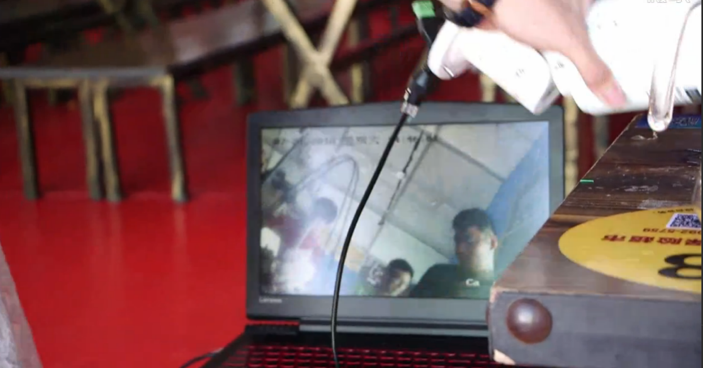 在浸泡了不知多久之后,工程师小哥哥开始进行检测了:即使在啤酒中,这台AP还在坚持给摄像头供电,小哥哥转了转摄像头,摄像画面同步在动,而Wi-Fi也连接正常。真是一台又坚强又努力的AP!