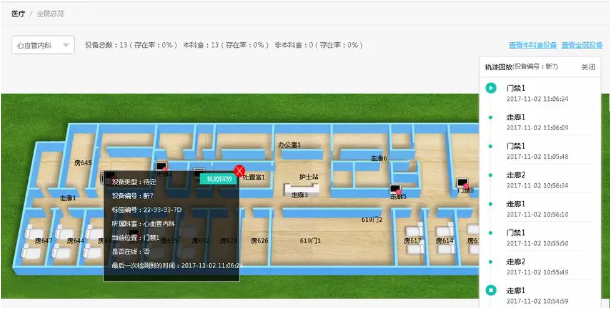 在设备定位的基础上,尊龙时凯网络还根据医院的具体需求,对定位标签进行全方位优化,加入了陀螺仪,这样便能实现各类设备运动轨迹的检测。这样的设计不仅让资产管理部门能够轻松管理,更让各诊疗科室在使用设备时免去了四处询问、查找的麻烦,通过统一管理平台便可以高效取用。