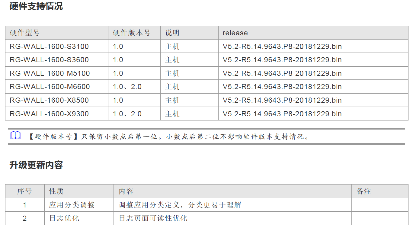 RG-WALL 1600-S3100/S3600/M5100/M6600/X8500/X9300 V5.2-R5.14.9643.P8-20181229软件版本(适用于R5.0主线版本)