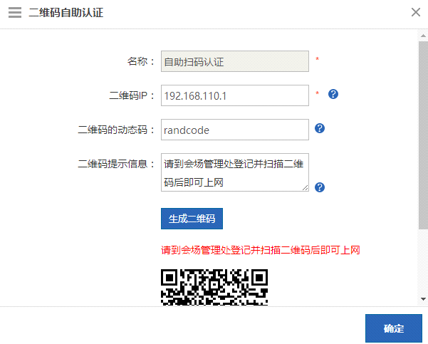 二维码提示信息:自定义。二维码提示信息会在显示二维码时进行呈现,建议填入提示用户如何操作才能上网。
