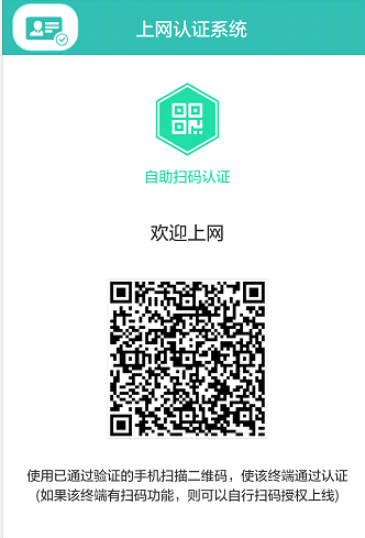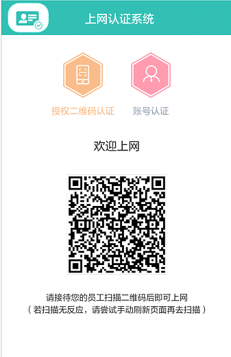二维码自助认证是指二维码预先配置,并打印张贴在某处。终端连网后直接扫描该二维码即可完成上网。对于PC等无法进行扫码的终端,将显示二维码授权认证界面。