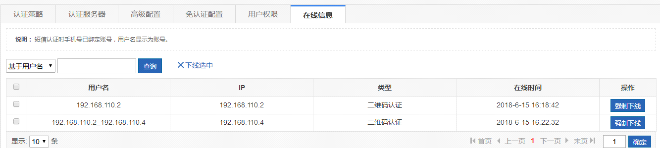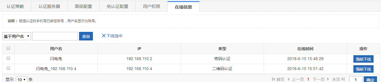 完成认证后,在设备WEB页面, “用户”--->“本地服务器认证”--->“在线信息”页面查看在线用户信息。