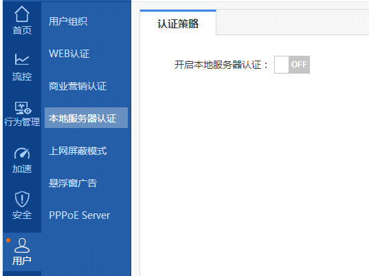 进入“用户”--->“本地服务器认证”认证界面,先选择“开启本地服务器认证”