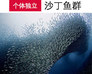 自然界的例子:就像海洋里的沙丁鱼群,貌似庞然大物,实则是由一个个独立的个体组成,世界上伟大的驯兽师都无法让一个沙丁鱼群听话。