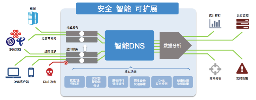 首先,与传统的手工打理方式的域名管理不同,SAM+采用了更加智能的域名生命周期管理,可以自动记录和管理用户的域名申请、使用、巡检,回收,同时通过访问记录、周报、到期提醒等的反馈功能,全面提高用户体验。其次,作为SAM+域名管理与多出口流量调度解决方案的亮点,平台能够用简化的“三步”实现流量调度,更大程度实现用户出口链路与目标地址的匹配,避免跨网访问,更大利用出口带宽。最后,该方案还特别加入了抵御DNS攻击的安全特性,能够智能识别攻击流量并进行阻断,7*24小时实时监控运行状态,及时发现异常情况并在第一时间发布告警讯息。