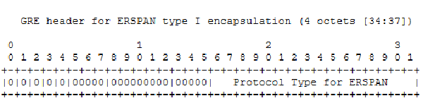另外在GRE头部中的Protocol Type字段也有指明内部的ERSPAN类型,Protocol Type字段值为0x88BE表示是ERSPAN Type II,0x22EB 表示是ERSPAN Type III。