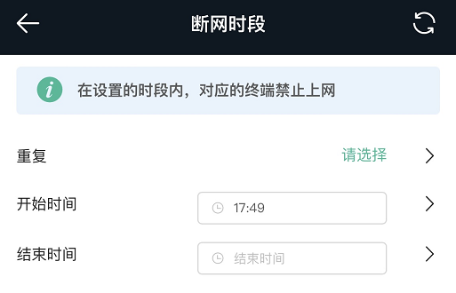 家长控制:选择[更多]>> [儿童上网],查看终端是否开启家长控制功能。若配置了相关功能,可以通过删除对应配置来恢复网络。