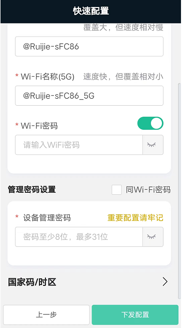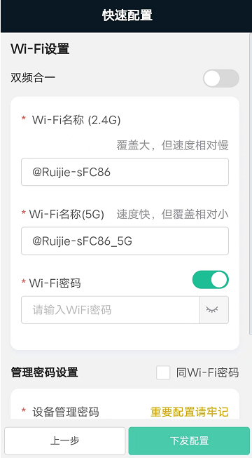 设置完成后,点击<下发配置>,Wi-Fi名称和密码将会改变,需重新输密码才可连接新的Wi-Fi。