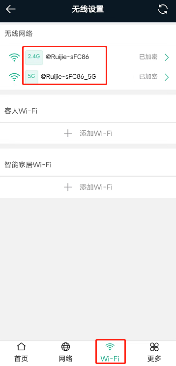 进入无线网络即可设置家用路由器的Wi-Fi名称和密码,部分家用路由器仅支持2.4G和5G设置同一密码。