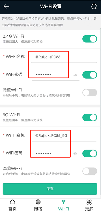 设置Wi-Fi名称:建议设置为字母或数字,尽量不要使用中文、特殊字符,避免部分无线客户端不支持中文或特殊字符而导致搜索不到或无法连接。