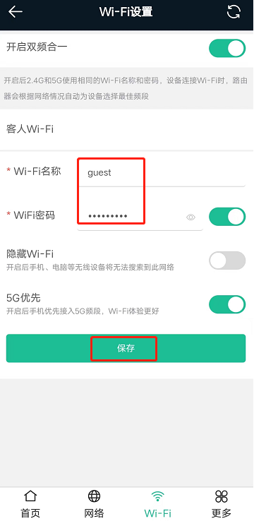 设置Wi-Fi密码:建议设置复杂的密码,长度8-31位,可包含大小写字母、数字和英文字符,不含单引号、双引号和空格等特殊字符。部分家用路由器仅支持2.4G和5G设置同一密码