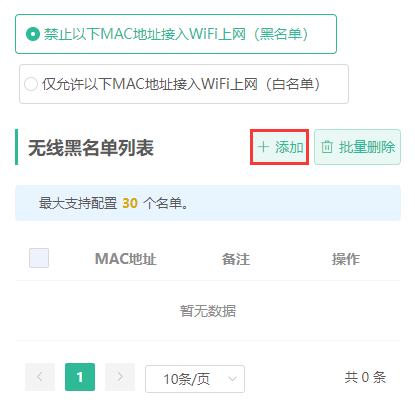 无线黑名单:开启无线黑名单后,黑名单中的设备将被禁止上网,未加入黑名单的设备不限制。