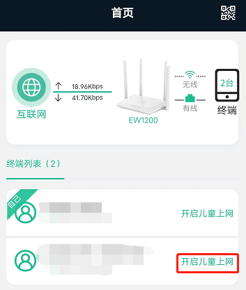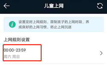 对连接Wi-Fi的某一设备开启儿童上网功能,可使该设备在规定时间内禁止上网。