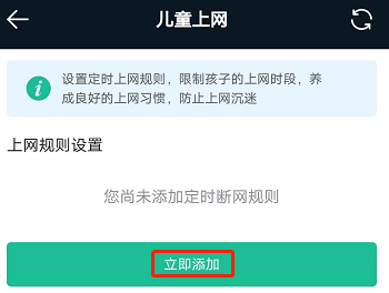 【页面向导】首页>> 儿童上网>> 开启儿童上网>> 立即添加